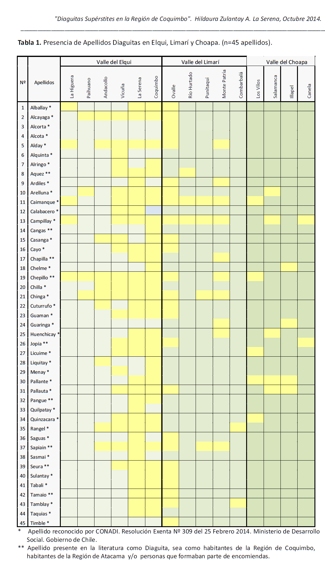Ponencia 2014: "Diaguitas Supérstites en la Región de Coquimbo". V Simposio Internacional Indígena: Conocimiento Ancestral e Interculturalidad. Mesa Territorio y Comunidad. Coquimbo. Chile.